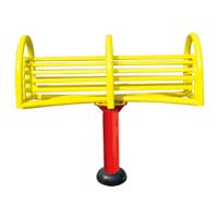 雙人伸腰器主要功能:舒展髖關(guān)節(jié),放松腰背部肌肉;發(fā)展上肢支撐力量和腰腹肌力量。