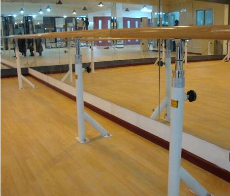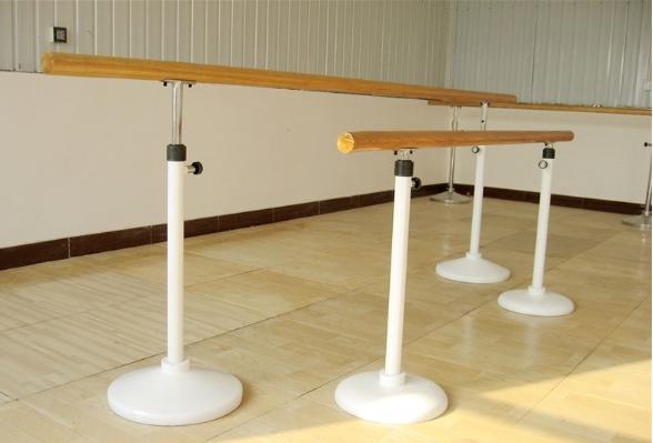 2.固定式舞蹈把桿:固定在地面上,對地面要求不高,只要能牢靠固定就可以,可以通過升降桿來調(diào)整把桿高度。