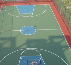 這是一種現(xiàn)場澆鋪用刮板制作在瀝青混凝土上或鋼盤混凝土結(jié)構(gòu)地面上的新型材,其工藝主要分為找平結(jié)合層、加強(qiáng)層、耐磨層等多層做法,還有含膠粒的多層做法這種面層材料及工藝的優(yōu)點(diǎn)是平整度高、表面硬度高、耐磨、抗曬、色澤鮮艷、使用壽命長便于管理和維修。這種面層材質(zhì)穩(wěn)定的籃球場,球員場上跑動(dòng)舒服,是一種既可供娛樂打球也可用做正規(guī)比賽的高檔次籃球場地